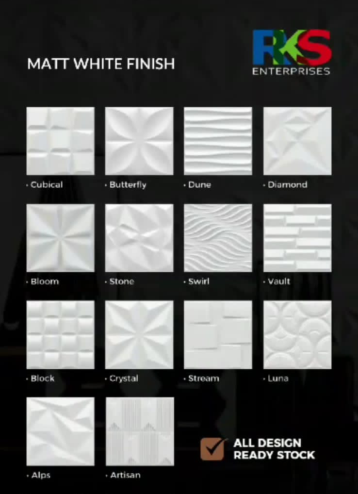 3D WALL PANEL DESIGN WITH Luxury TEXTURE FINISH GIVE VERY RICH LOOK TO YOUR DREAM HOME. Youtube link Rks Enterprises is One Of The Leading Luxurious 3D Panel Textured Finish 3D PVC Wall Panel Manufacturer In India Decorate your home with Exclusive Luxurious DIMOND 3D Wall Panels WITH Marble Textured Finish. This Luxurious 3D Wall Panels Marble Textured Finish is becoming Very Popular in the World Market and it Looks Very Luxury and Attractive. Luxury 3D Wall Panel Advantage:- Pre-Coated 16 different Textured No need to paint Laminated Size: 500x500mm Material: PVC Super Durable, Ultra Light, Fire Resistant, Anti Damp, Anti Bacterial, Anti Microbial, Sound Proof, Thermal Insulation. Looking for Dealer and Stockiest Throughout India.